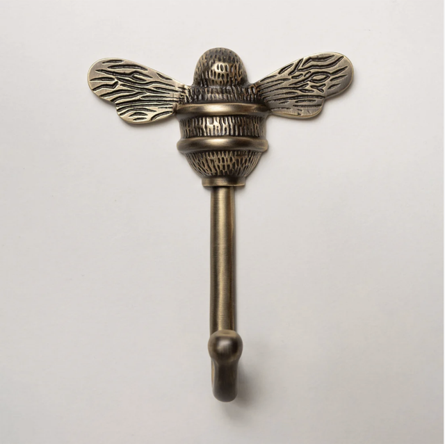 Add a charming and whimsical touch to your space with a solid brass bumble bee coat hook available in a polished brass and antiqued brass finish. Crafted from high-quality solid brass, this unique coat hook features intricate detailing of a bumble bee in flight, bringing both functionality and a playful design element to any room. Its rich brass finish adds warmth and elegance, making it a perfect accent for entryways, hallways, bathrooms, or bedrooms. Whether you're hanging coats, hats, or accessories, this hook offers both strength and style in one beautifully crafted piece.