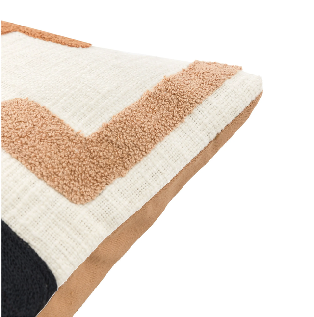 Update your space with this eye catching abstract cushion. With a bold abstract pattern in warm nutmeg tones and pops of black, this is the perfect stylish finishing touch for any living space.