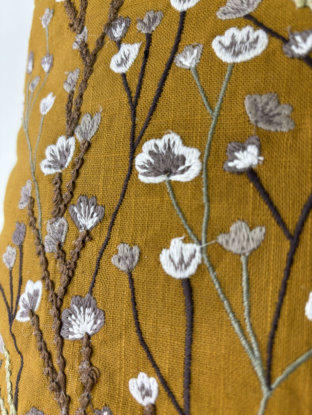 Bring effortless charm and warmth to your living spaces with this embroidered cushion, crafted from 100% cotton chambray.