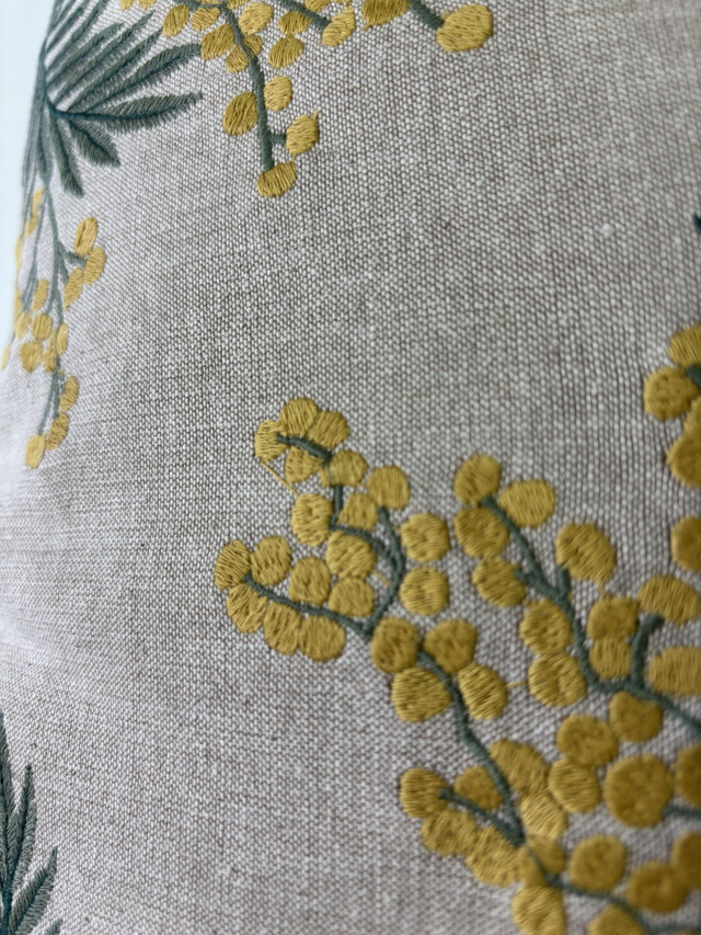 Bring effortless charm and warmth to your living spaces with this embroidered cushion, crafted from 100% cotton chambray.