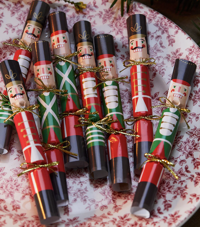 Sure to be loved by kids and adults, these mini Christmas crackers have a red and green Nutcracker soldier design - perfect for Christmas catch ups, office parties or Christmas table settings. Each cracker contains an entertaining scroll with a joke and conversation starter to get the table talking.